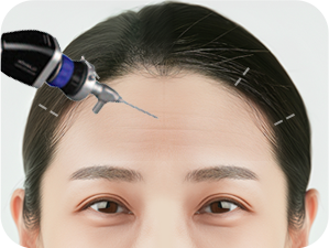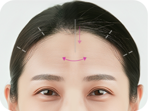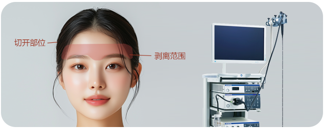 使用FULL HD内视镜,去除向下对眉毛进行固定的支持韧带及形成眉间皱纹的肌肉,去除额头及眉间皱纹,同时向额头方向拉抻发际线,是可对额头宽度进行缩短的一种整形术。