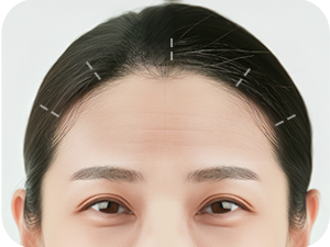 尽最大努力保存因之前手术而受损的神经和血管,同时自然恢复向上抬起额头及眉头的力量。 另外,确认头皮的富余量以及头皮和眉毛部位的粘连是否安全也非常重要。