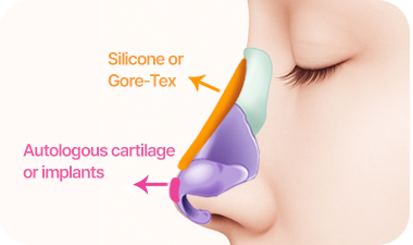 If the nose bridge is low, silicone or autologous tissue implants are inserted.
