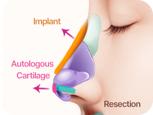 LaBom's short/upturned nose surgery adjusts the nose length according to the facial proportions by diagnosing the skin thickness, nostril exposure, and nasal profile angle. It corrects the position of the septum and nasal tip cartilage. A customized cartilage support is used based on the degree of shortening to ensure strong fixation and prevent recurrence.