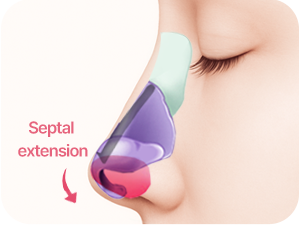 Septal extension to lengthen the nose.