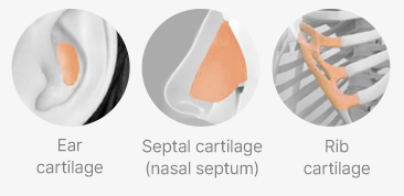 Autologous Cartilage (rib cartilage, ear cartilage, or septal cartilage) is harvested.