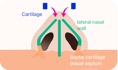 The cartilage at the nasal tip is trimmed, and septal extension surgery is performed to move the nasal cartilage upward and secure it, lifting the drooping nose tip.